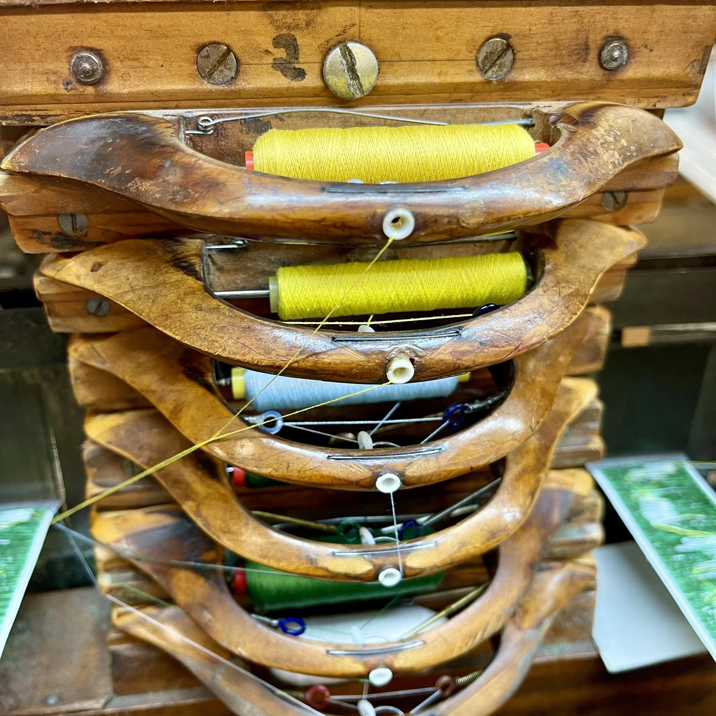 Wir besichtigten zum einen die Bandweberei Kafka. In Wuppertal wurden traditionell immer Kurzwaren hergestellt. In der Bandweberei Kafka wird auf 25 alten Jaquard-Webstühlen bis heute produziert, so dass man neben einer noch tätigen Weberei gleichzeitig Einblick in ein Industriedenkmal und die Produktionsbedingungen des 19. Jahrhunderts bekommt. Wir wurden herzlich empfangen und in zwei Gruppen aufgeteilt. Die erste Gruppe startete direkt in die Produktionsstätten, ein Backsteinhaus aus dem 19. Jahrhundert. Die zweite Gruppe wurde an eine liebevoll gedeckte Kaffeetafel im benachbarten schieferverkleideten Haus im bergischen Stil geladen. Uns erwartete ein zauberhaftes Ladenlokal, das schon weihnachtlich geschmückt war und einfach nur zum Genießen und Stöbern einlud. Ein toller Auftakt unserer Exkursion.